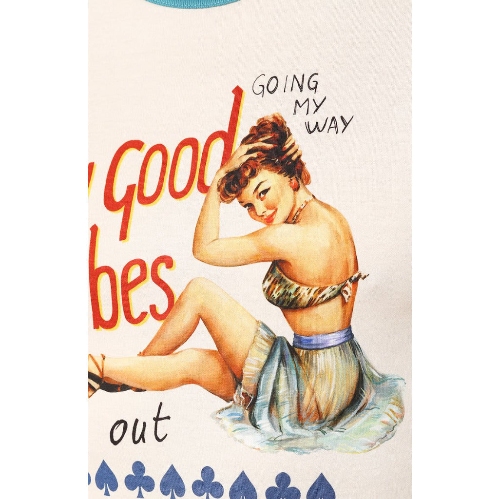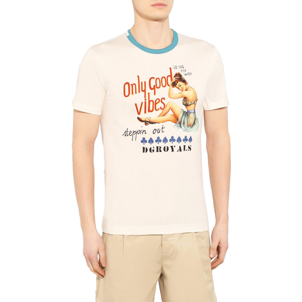Dolce & Gabbana cotton t-shirt with Pin-up print and writing, teal collar