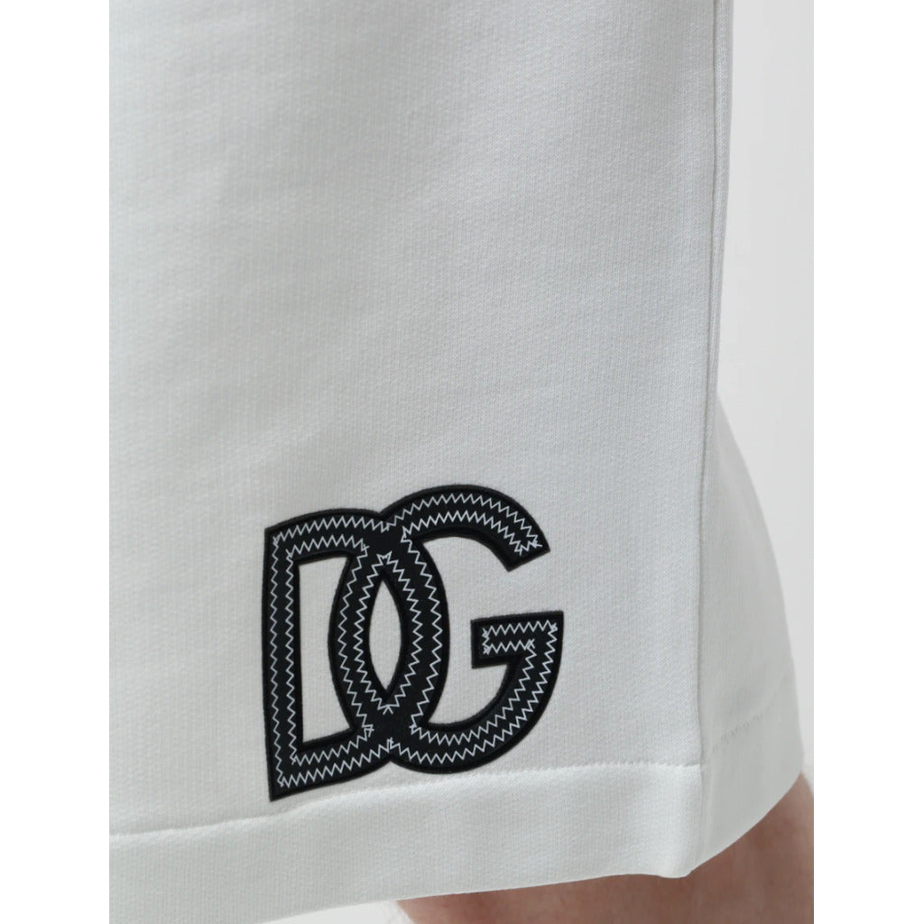 Dolce & Gabbana cotton Bermuda shorts with drawstring, black striped print on the elastic band and DG logo patch applied on the bottom, two side welt pockets and two back pockets with velcro fastening