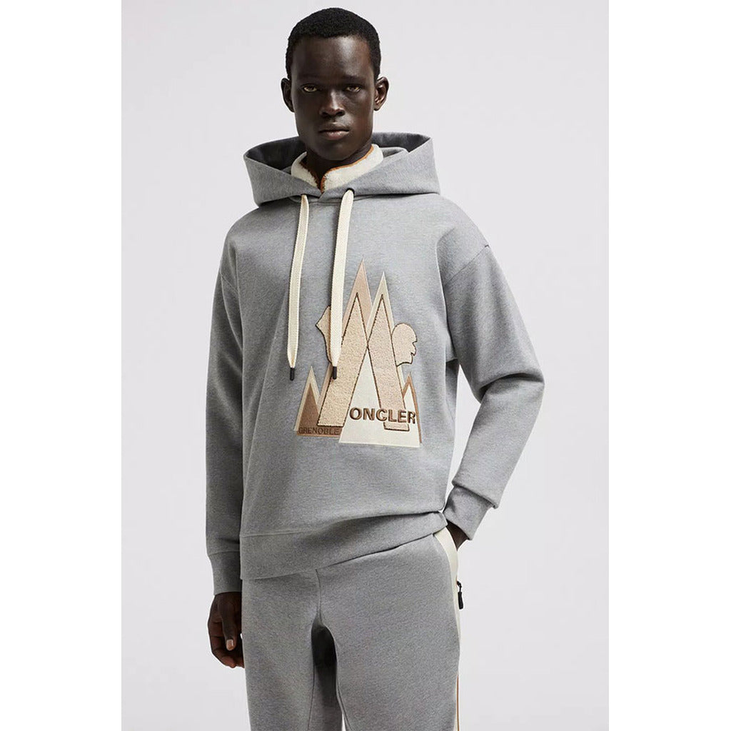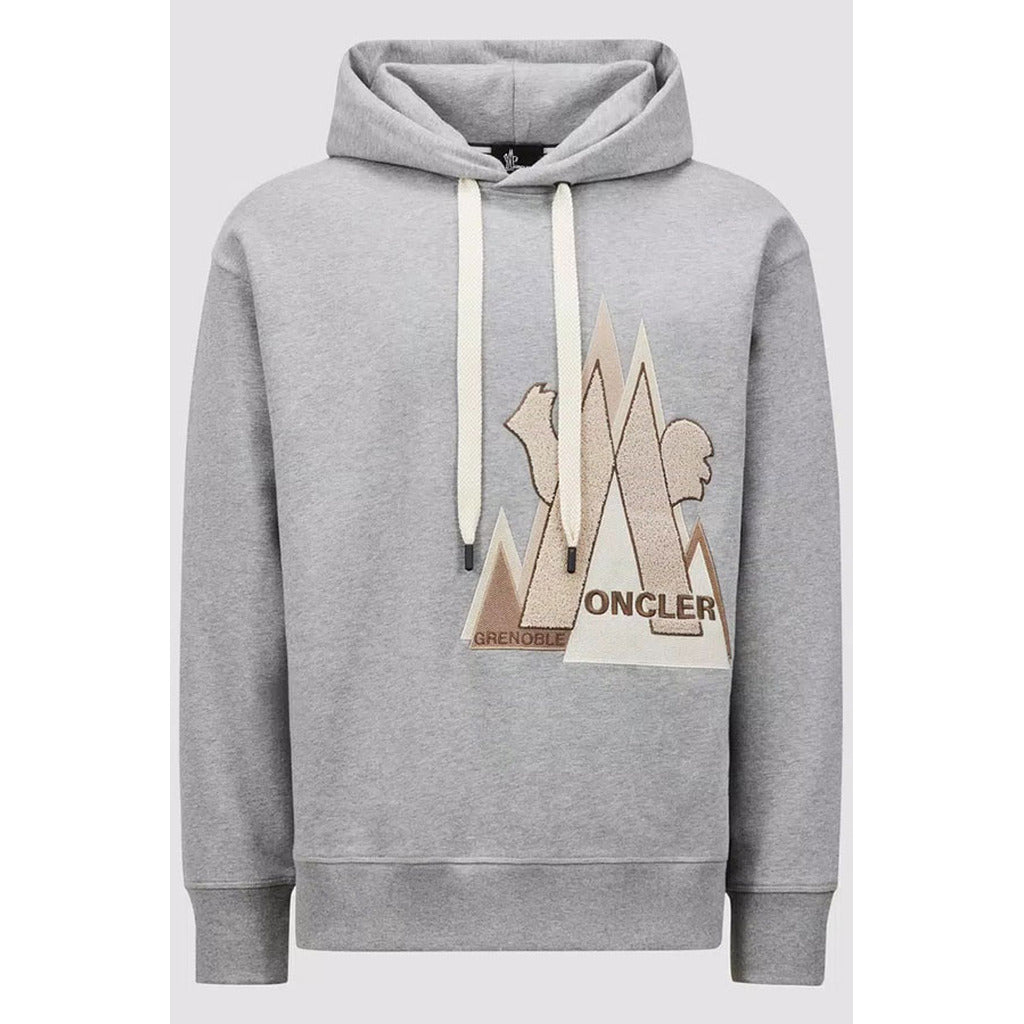 Moncler, grenoble sweatshirt, 100% cotton color gray, hooded, embellished with drawstring and logo patch on front.