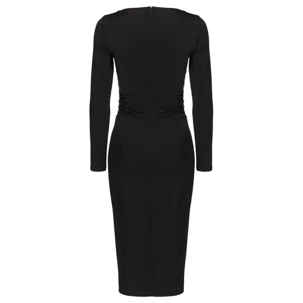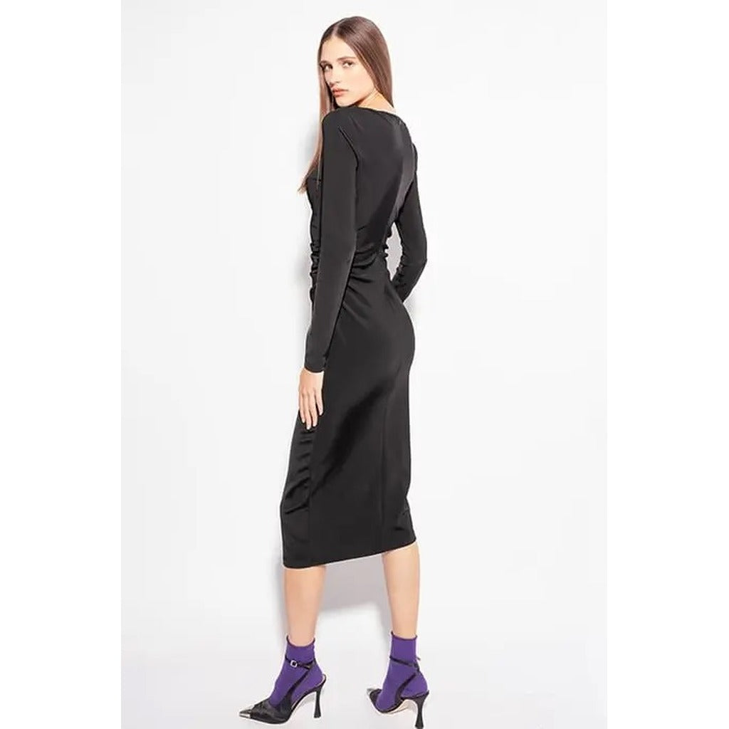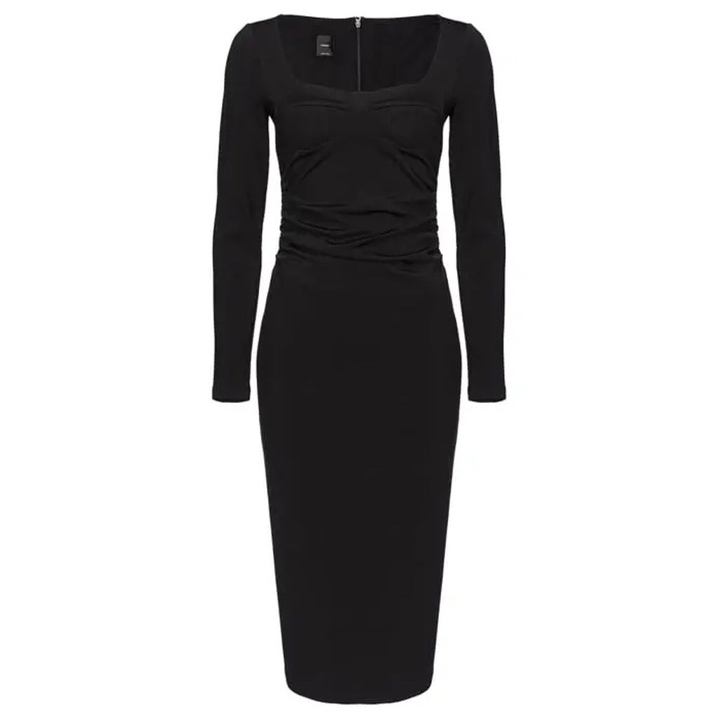 Calf length dress in fluid technical viscose fabric with neoprene look. Slim fit. Central zip fastening on the back