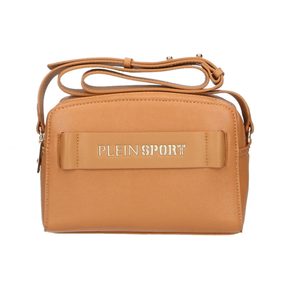 Plein Sport crossobody bag, brown camel color, front logo, double zip closure.