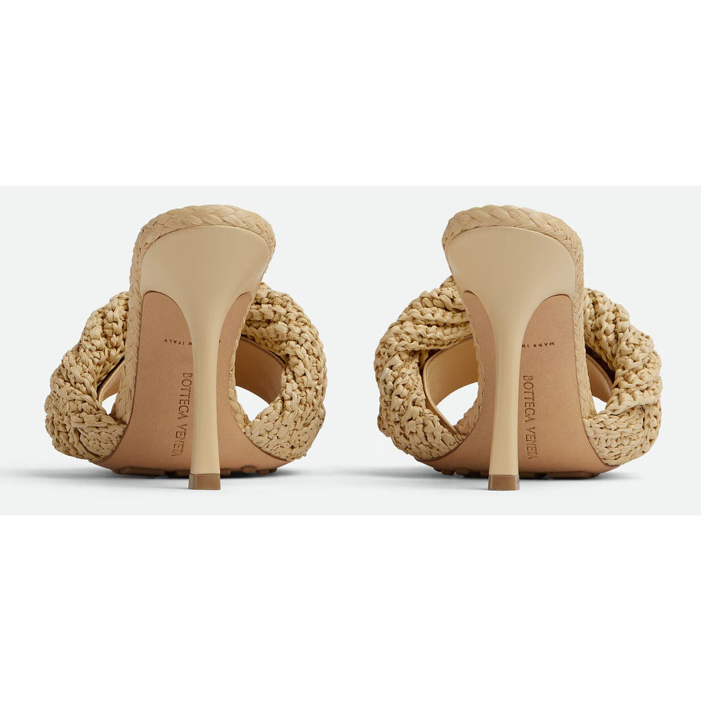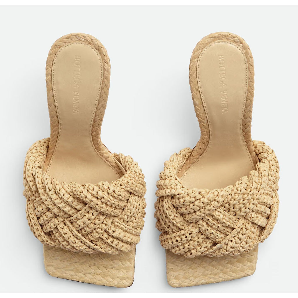 Bottega veneta, raffia mule sandals with woven motivom, sugar cane colour.