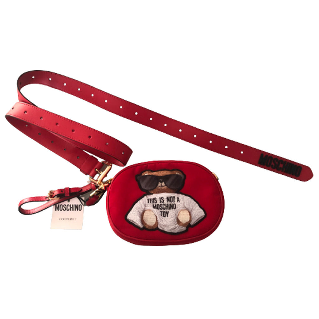Moschino Couture nylon belt bag with Teddy bear embroidery application on the front, zip opening, belt with red calfskin loops and three-dimensional applied logo