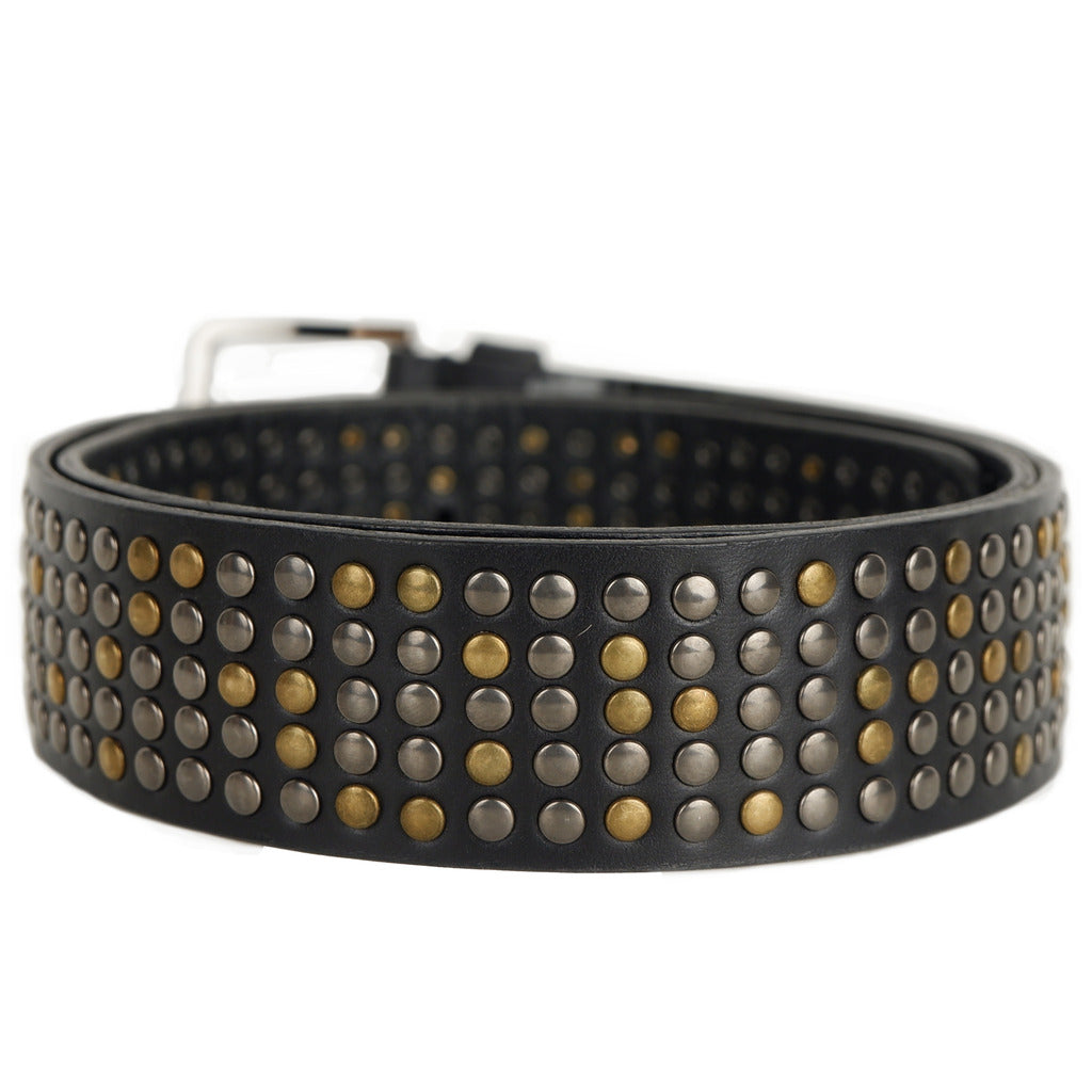 Dolce & Gabbana black calfskin belt with gold and silver studs applied all over the surface