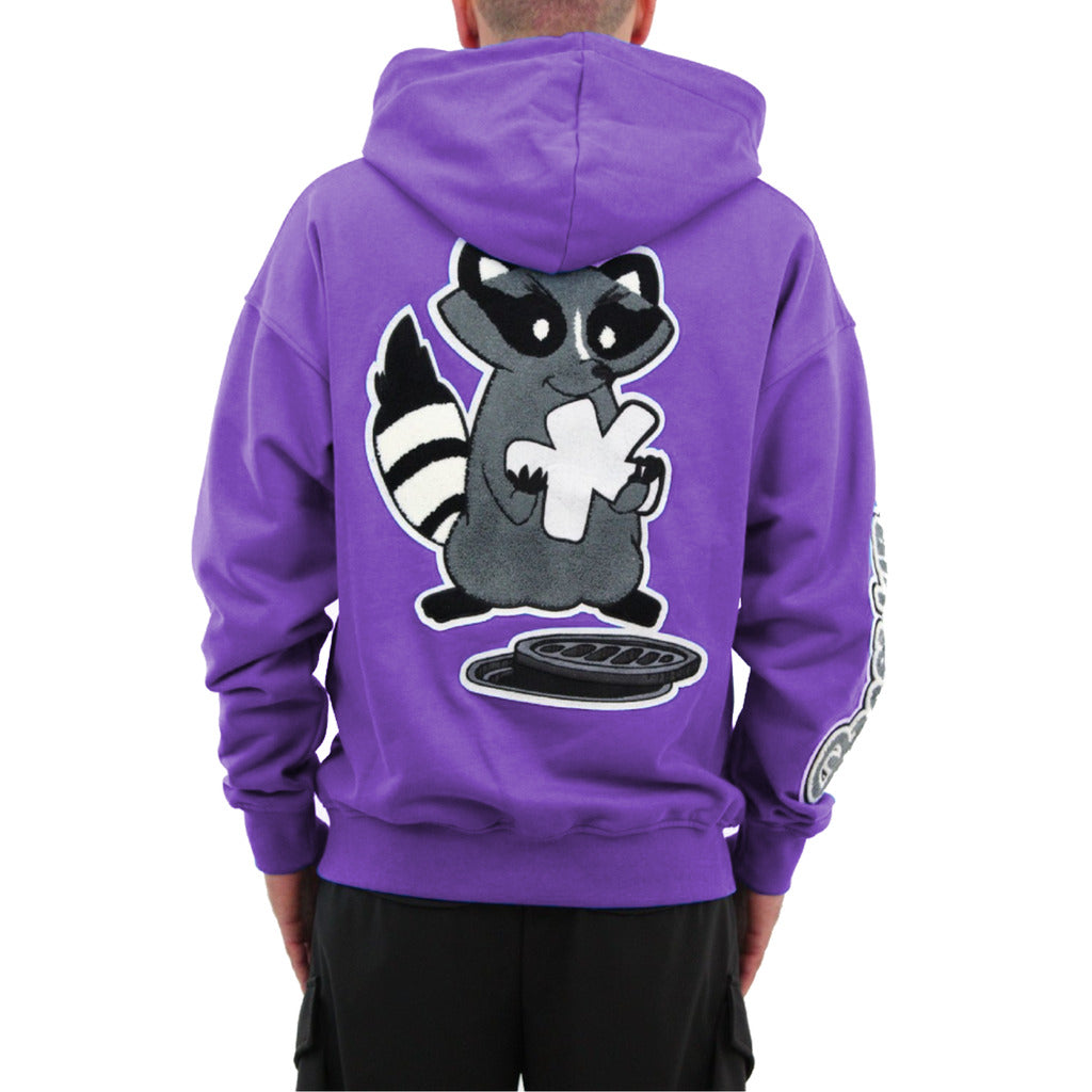 Comme des Fuckdown cotton sweatshirt with hood and drawstring, sponge patches applied on the front, sleeves and back