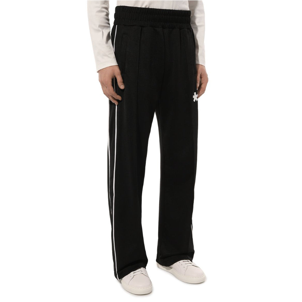 Comme des Fuckdown technical fabric tracksuit trousers with front logo print and white side bands, two side pockets