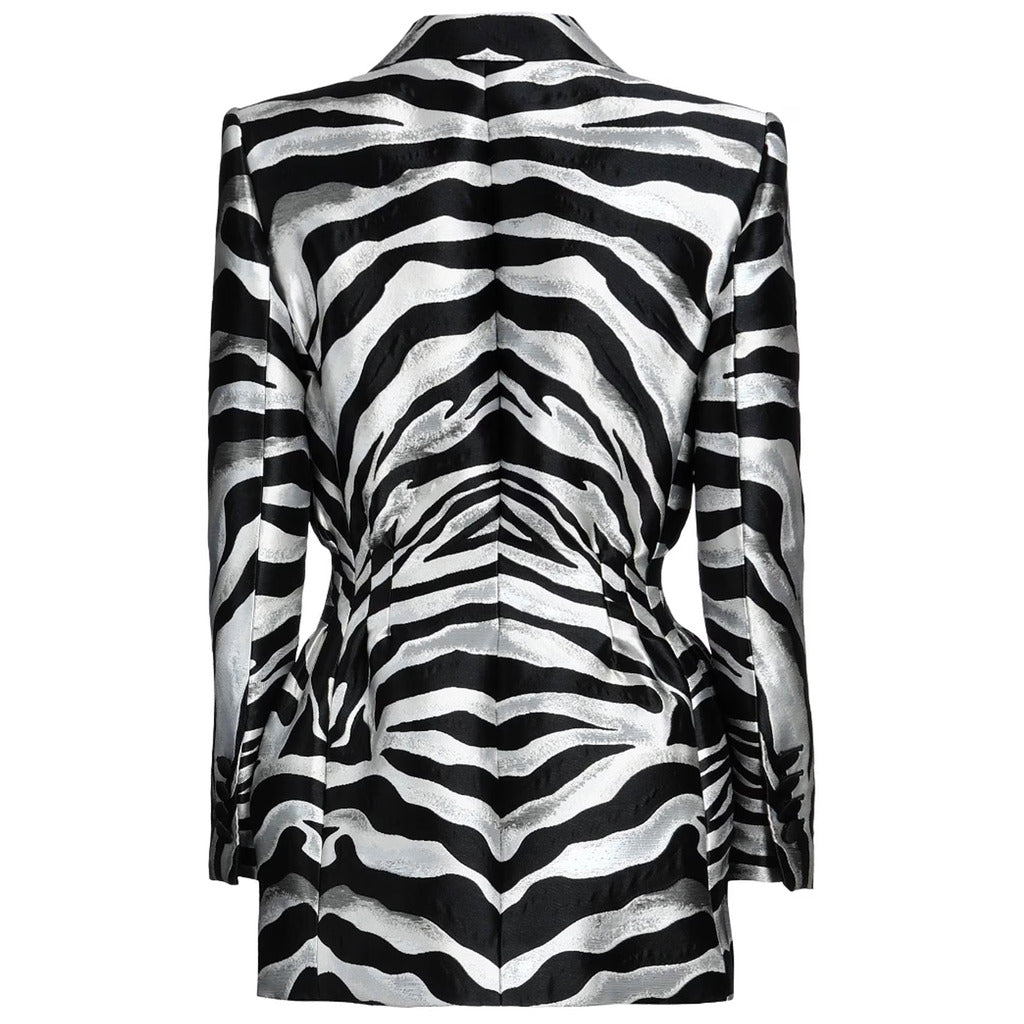 Dolce & Gabbana double-breasted jacquard jacket with peak lapels, external zebra print, internal leopard print lining, chest pocket and two front pockets