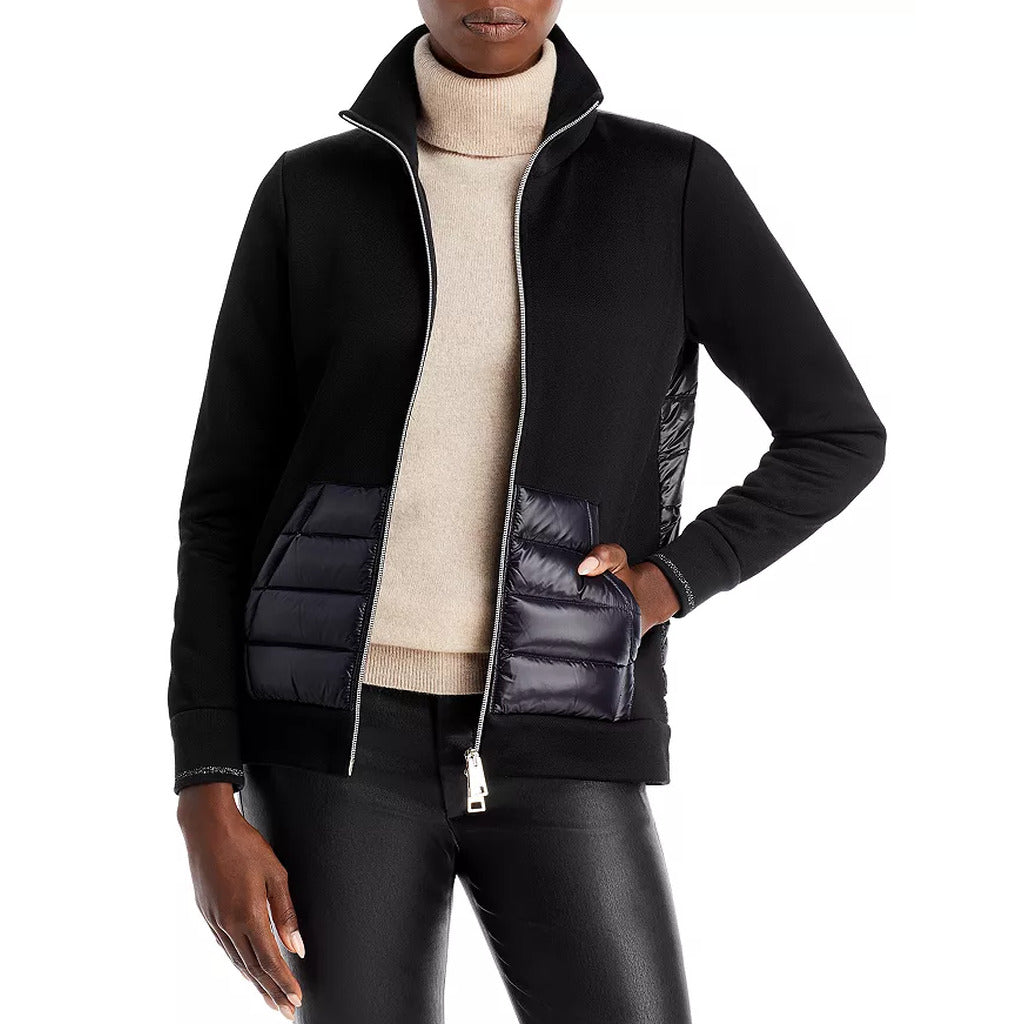 Herno viscose blend jacket with quilted back, down padding, zip fastening and front pockets, glitter decoration on collar and cuffs