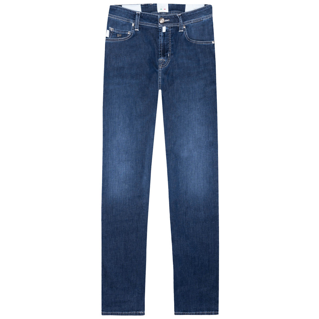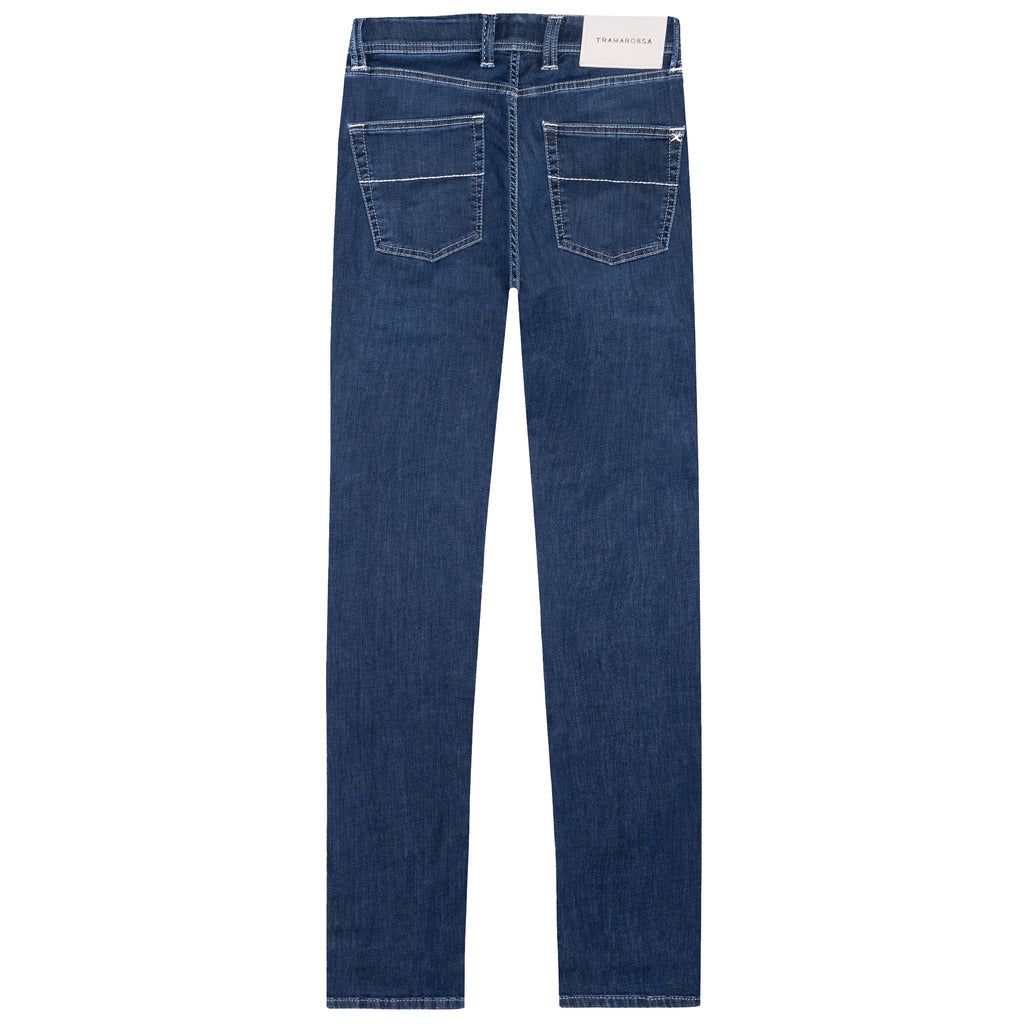 Tramarossa haute couture men's jeans in slightly stretch cotton, regular fit, five-pocket model, beige suede label with logo on the back