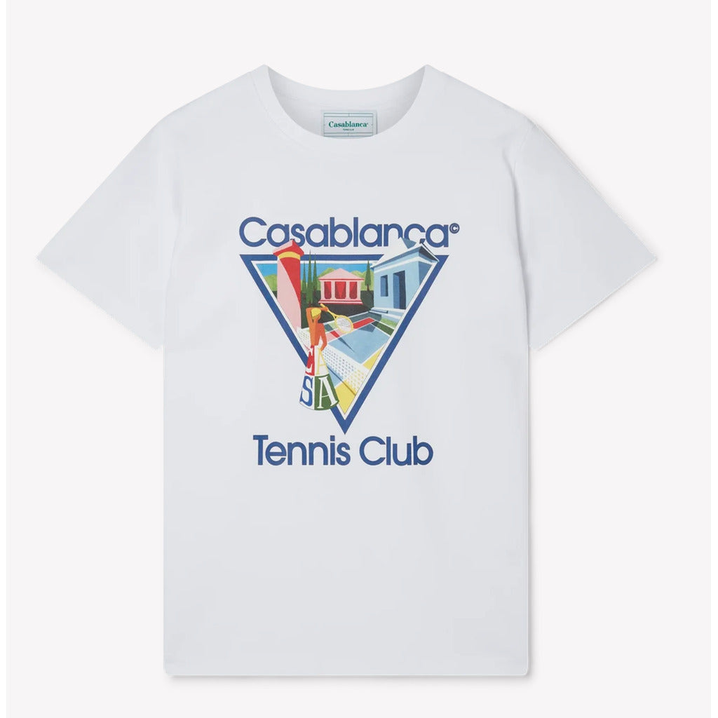 Casablanca, 100% cotton crew-neck t-shirt, tennis club print, white color with blue accent, relaxed fit