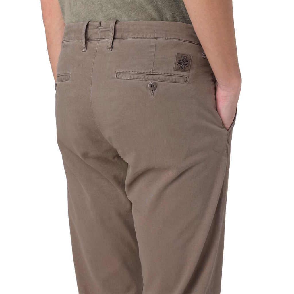 Jacob Cohën Bobby model chino trousers in hazelnut cotton. They have two diagonal side pockets and two back pockets with button. Button closure and belt loops at waist. Slim fit.