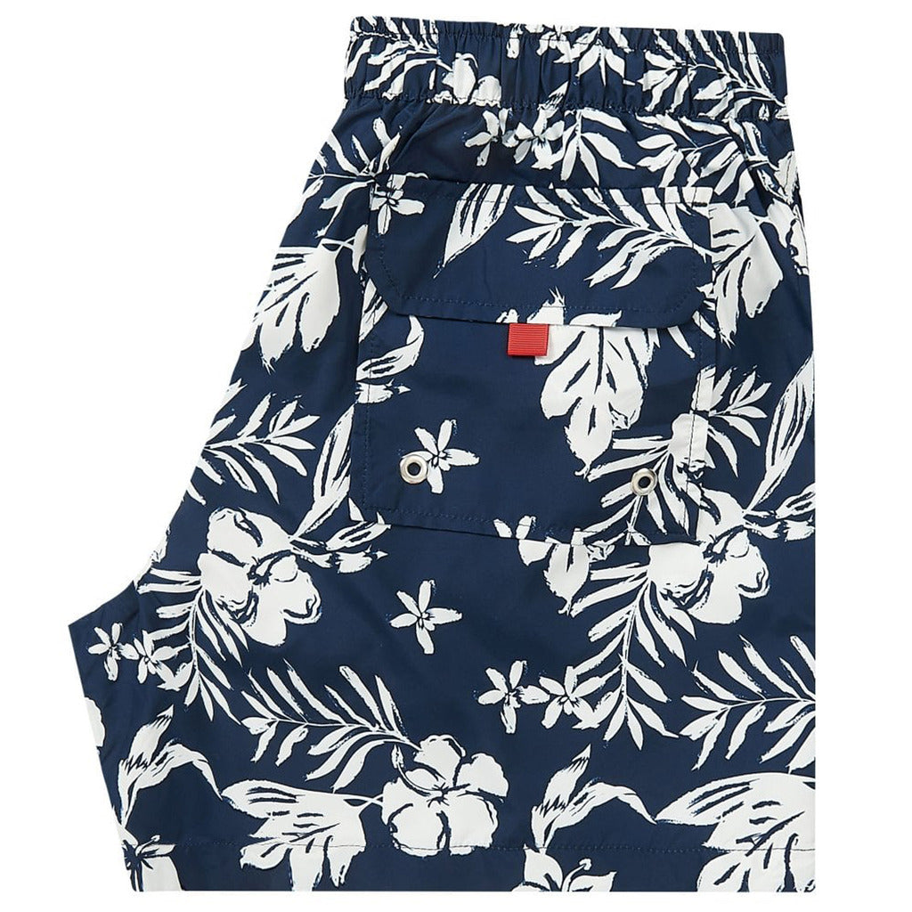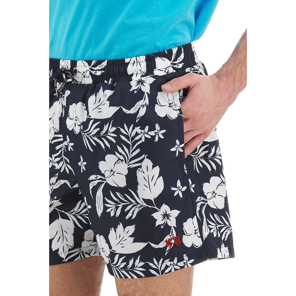 La Martina men's boxer costume in polyester, drawstring waist, two side pockets and one back pocket; floral print and embroidered logo on the front
